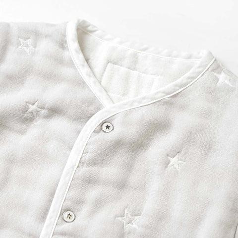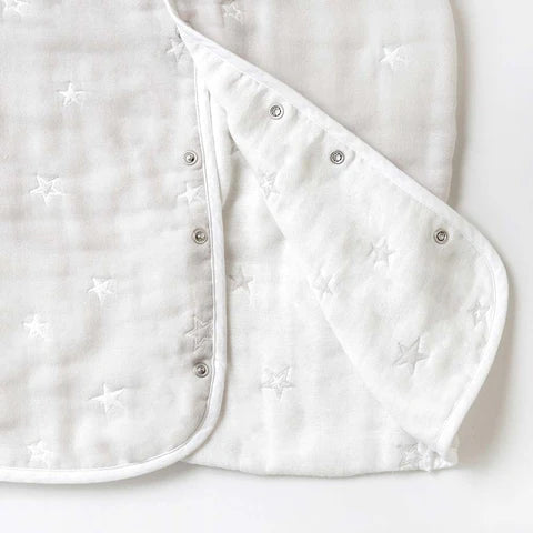 Made with 6 layers of gauze fabric of varying densities. The airy structure traps warmth in cold seasons, while its breathability and absorbency keep your child dry and comfortable in warmer months.
