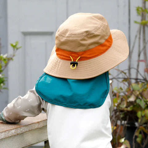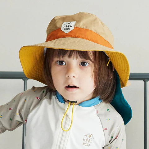 Lightweight and water-repellent UV hat with sunshade flap, adjustable fit, and 94% UV protection — perfect from ages 1–4 for outdoor play and water fun.