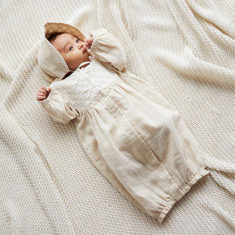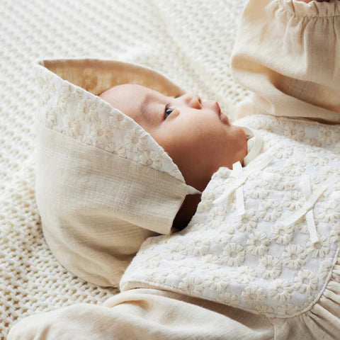 Hoppetta Flower Embroidered Newborn Gown & Bonnet Set