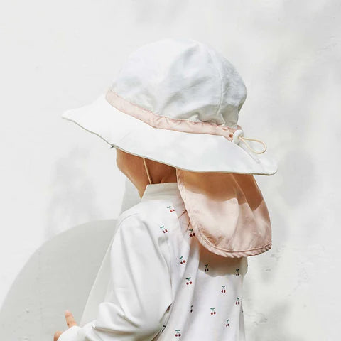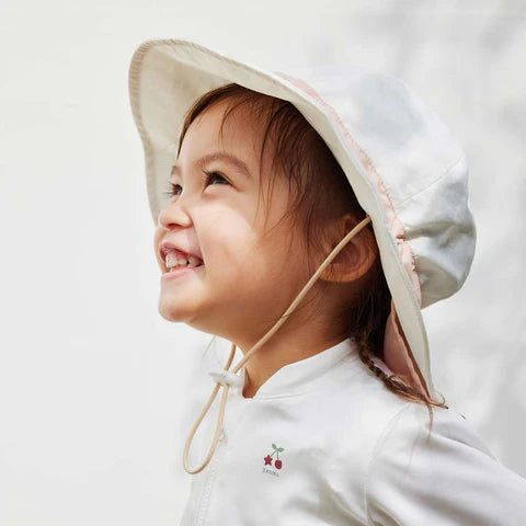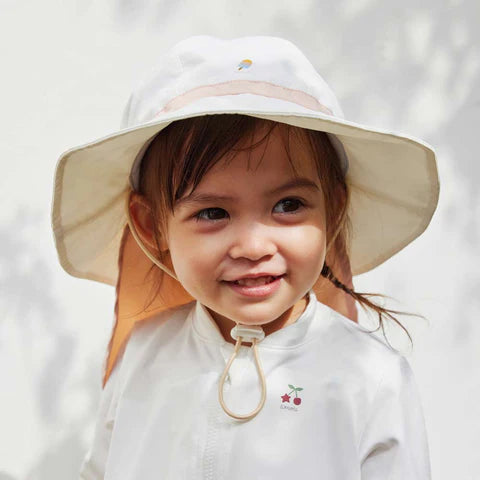 Lightweight and water-repellent UV hat with sunshade flap, adjustable fit, and 94% UV protection — perfect from ages 1–4 for outdoor play and water fun.