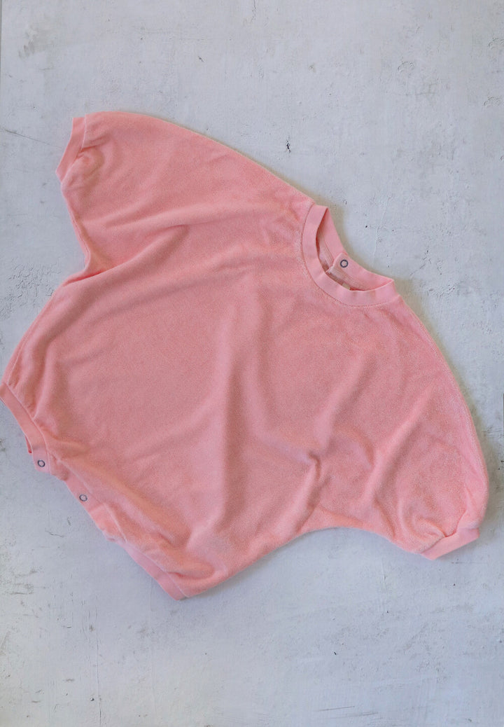 This is an oversized sweat suit with snaps at the bottom for easy diaper changes.It provides a seamless design on the arms, giving children an adorable rounded and ample silhouette. It's available in two sizes, large and small. Pairing it with leggings or tights adds extra warmth.