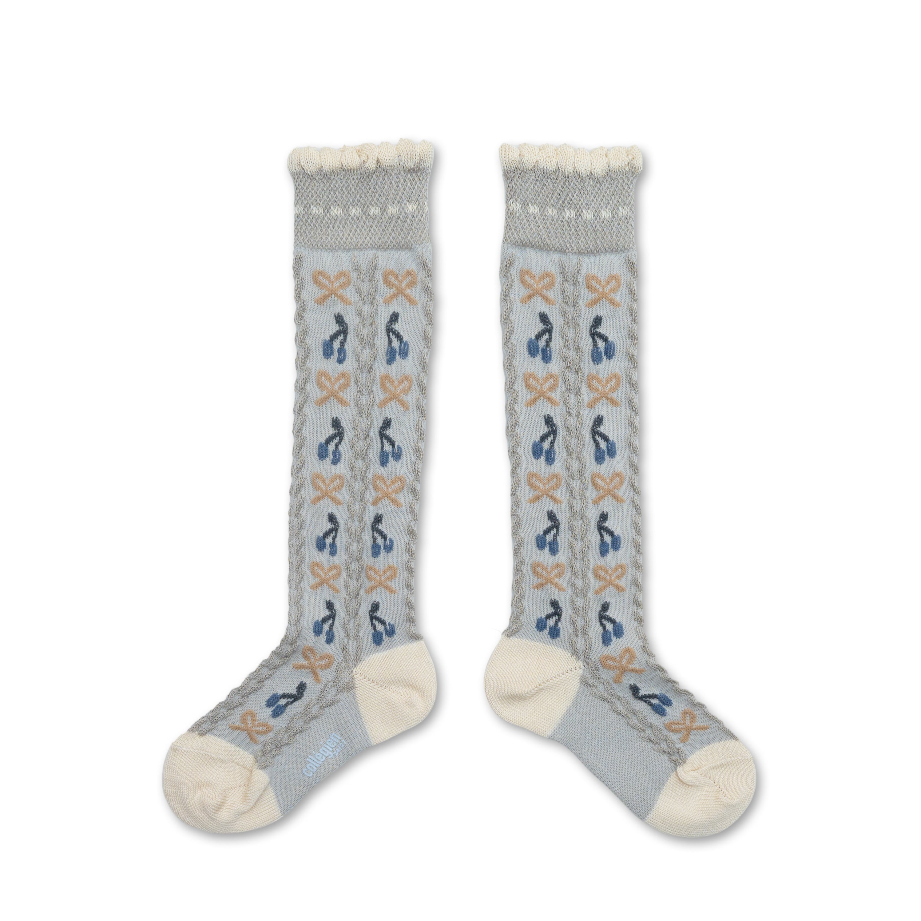 Cerise - Jacquard Cherries and Bows Knee-high Socks - Gris Perle