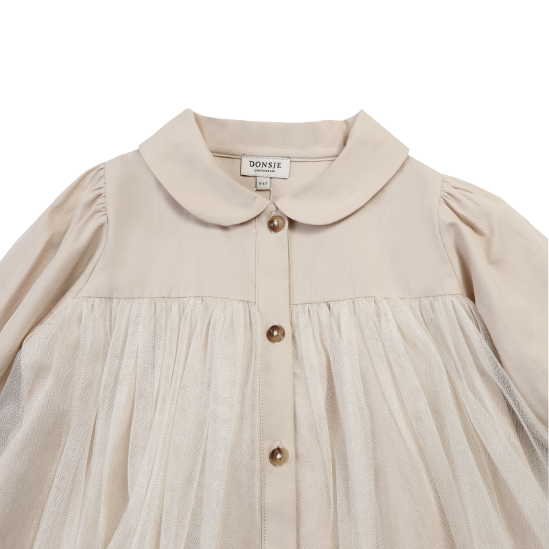 Timelessly tailored! The Venne blouse in soft taupe features elegant button fastenings and a charming soft silhouette making it a versatile staple for any little wardrobe.