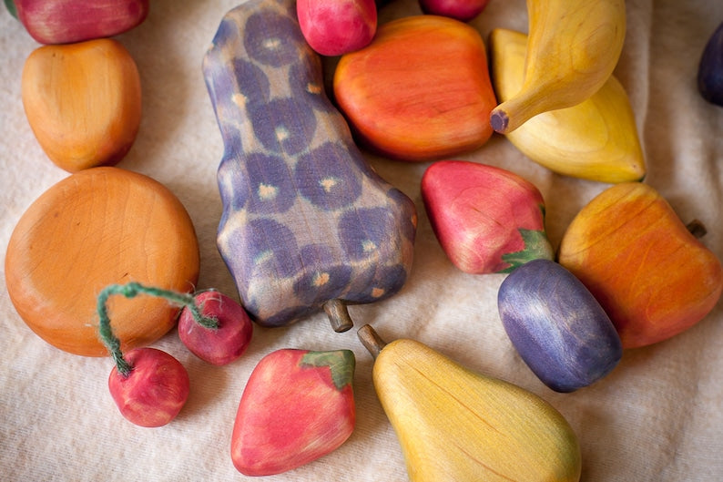 We have a full jute bag of real wooden fruits. Even food dyes painted - almost edible.Weight about 180 grams - 0.66 pounds.