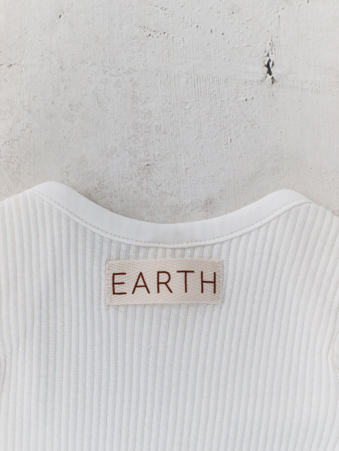 EARTH utilizes a garment dyeing technique that colors finished garments, conserving water compared to fabric dyeing. This process infuses the product with a soft, luxurious vintage allure.