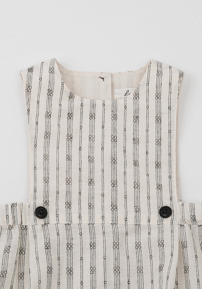 Baby girl romper thet captures Louisiella’s signature vintage charm with its soft check pattern and relaxed, easy fit. Thoughtful button details add a sweet, classic touch, making this piece perfect for playful days or quiet afternoons.