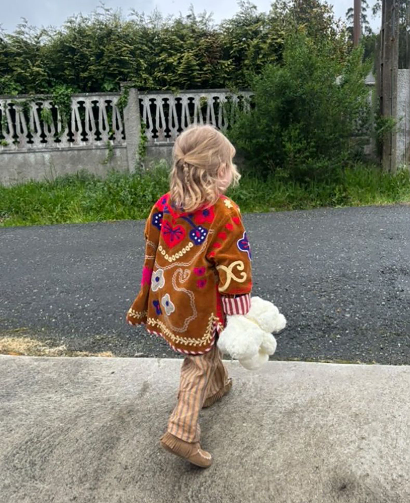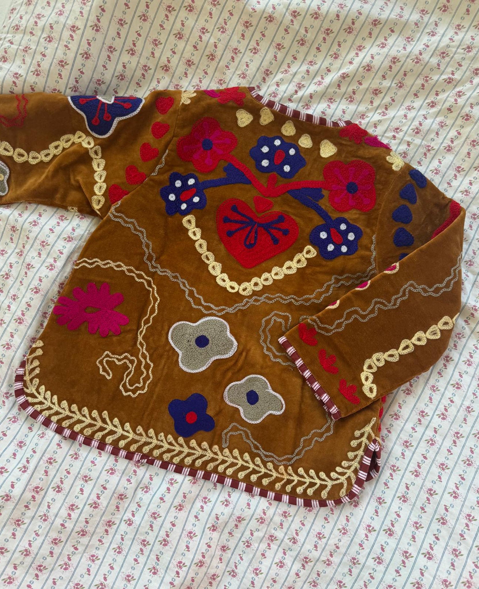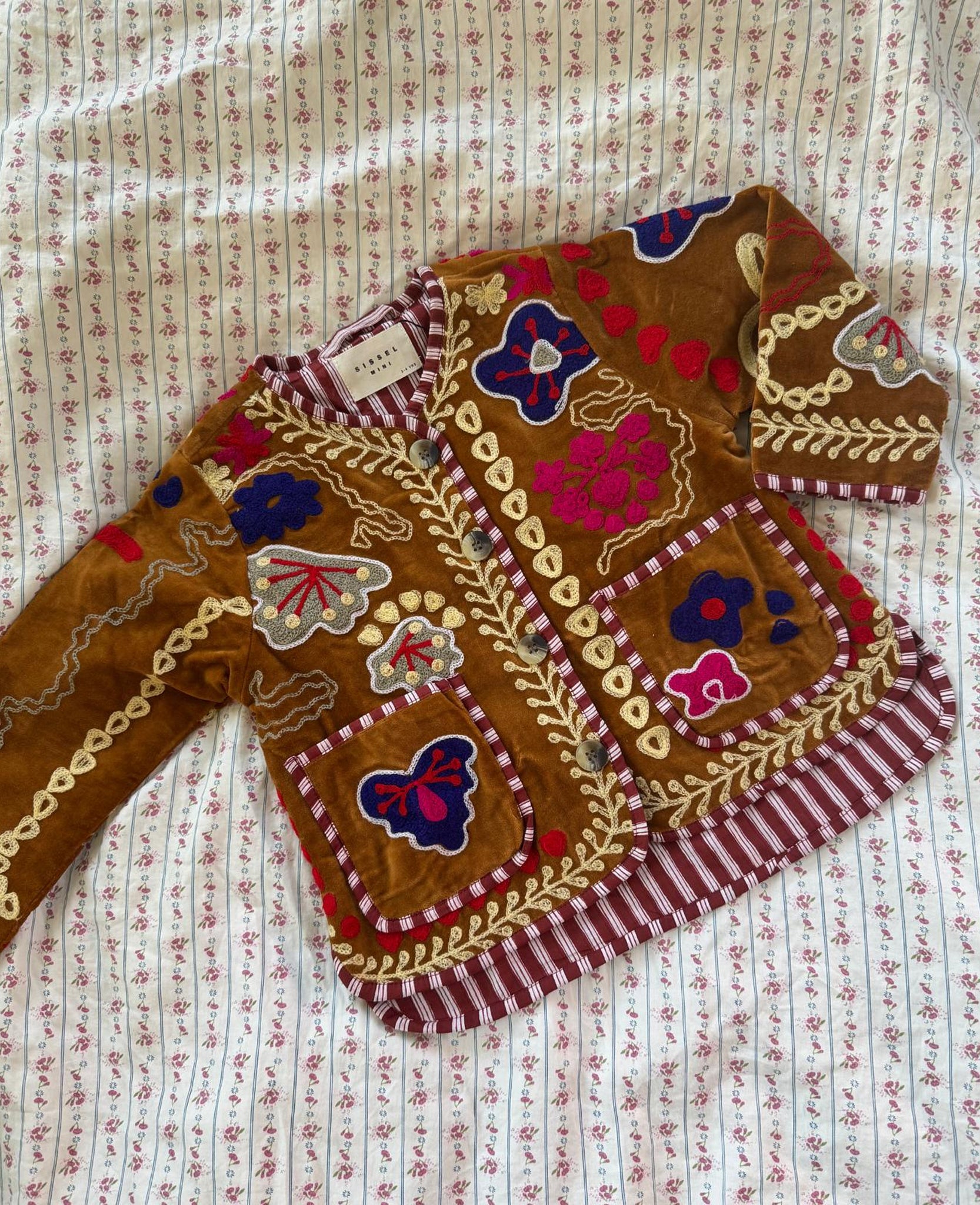 Maggie MINI Jacket is made in cotton canvas and features eye-catching all over Suzani floral embroidery. It has a casual fit, two pockets at the front and has buttons in front placket. The special designed artwork features poppy flowers, strawberries, evil eyes and other cute motifs.
