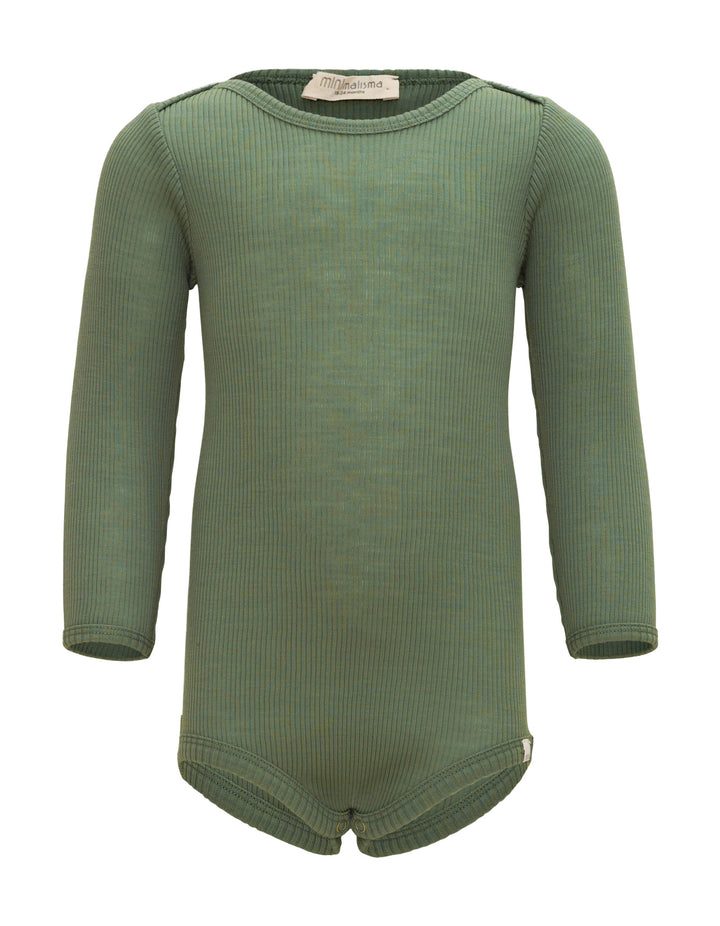 This body is crafted from soft merino wool with self-fabric bindings around the leg-opening and three nickel-free YKK buttons for quick and easy outfit changes.