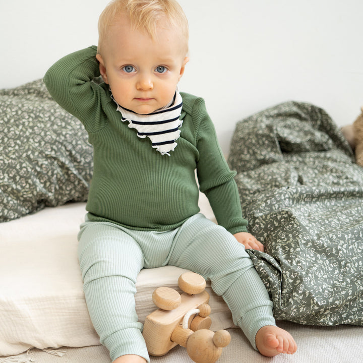 This bestselling long-sleeve rib body features a soft envelope neck for convenient dressing and nappy changes; whether pulled up or down.