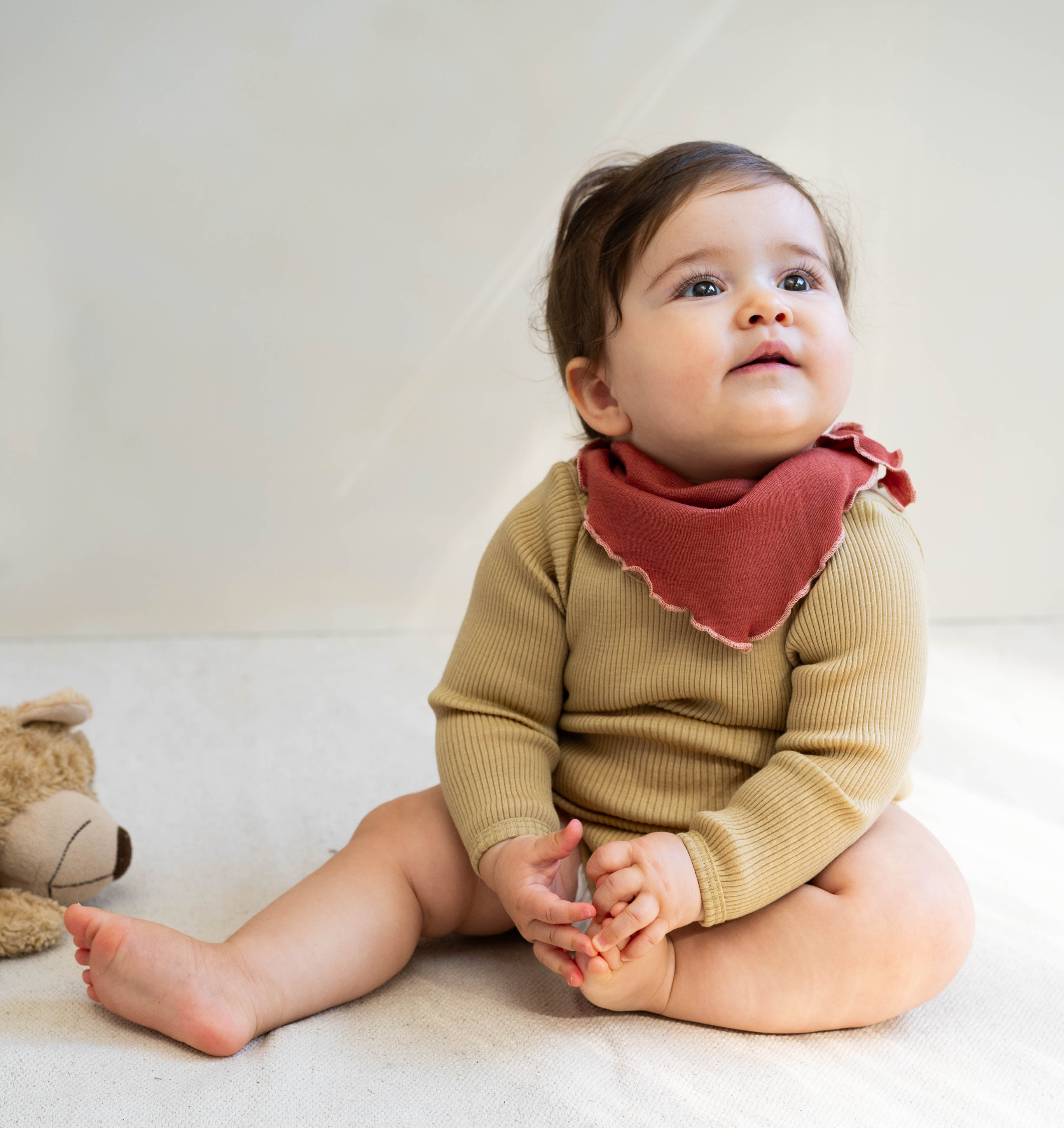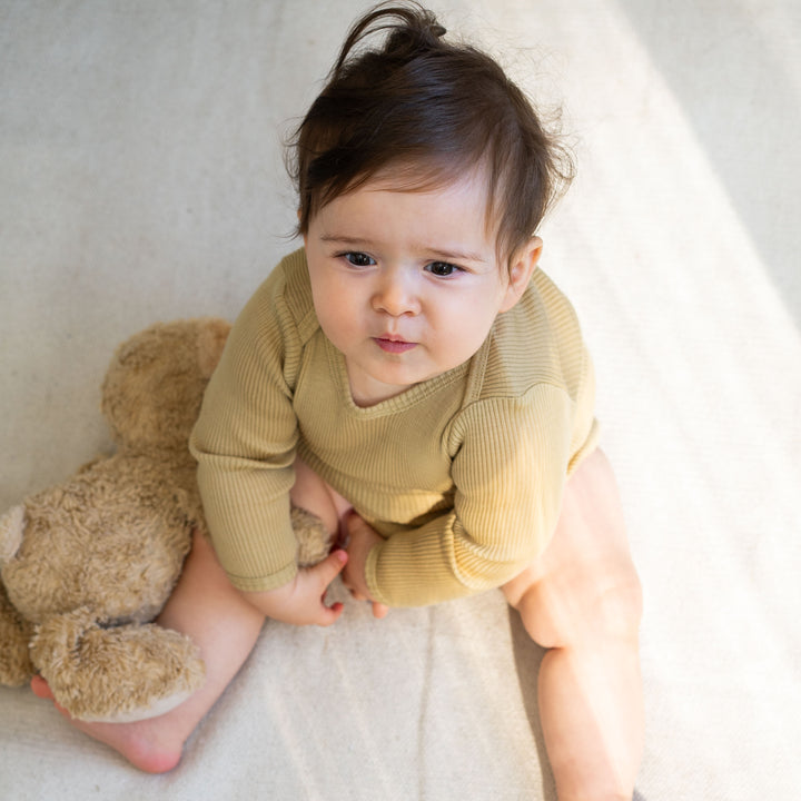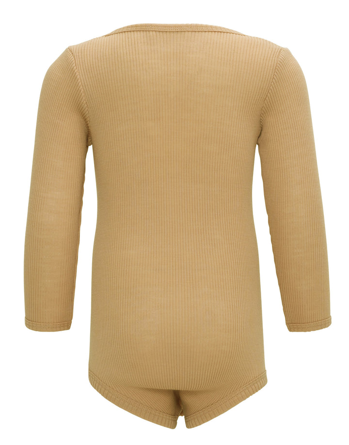 This bestselling long-sleeve rib body features a soft envelope neck for convenient dressing and nappy changes; whether pulled up or down.