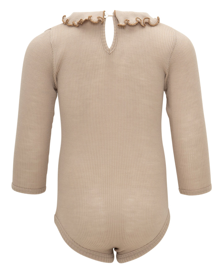 This body is crafted from soft merino wool with self-fabric bindings around the leg-opening and two nickel-free YKK buttons for quick and easy outfit changes.