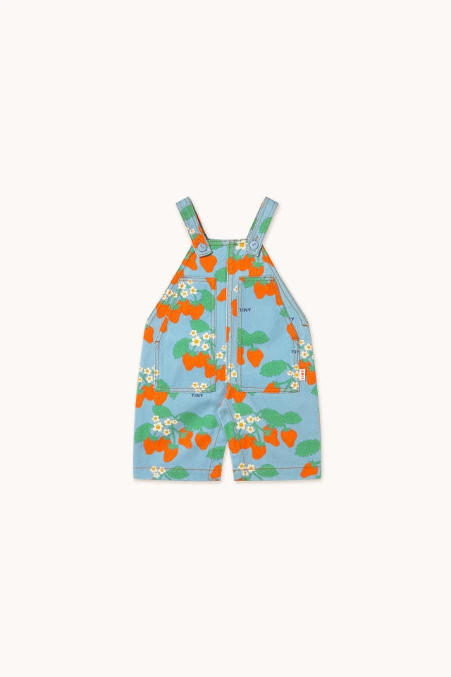 Turning strawberries into a statement! This dungaree is crafted from durable denim, and it features large front pockets for a practical touch and a relaxed, comfortable fit. The colorful, vibrant strawberries print brings a fun, fresh energy to the design, making this piece both stylish and versatile. Perfect for layering over a tee or wearing on its own, this dungaree adds a touch of personality to any casual look.