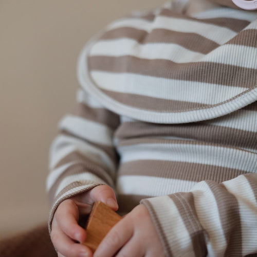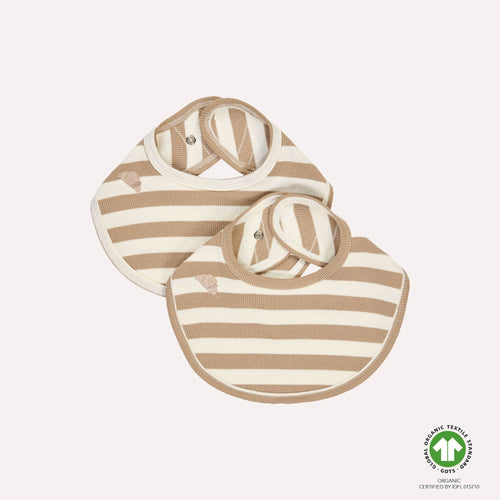 Basic bib, 2 pack. Round design, regular fit. Extra button for size adjustment.