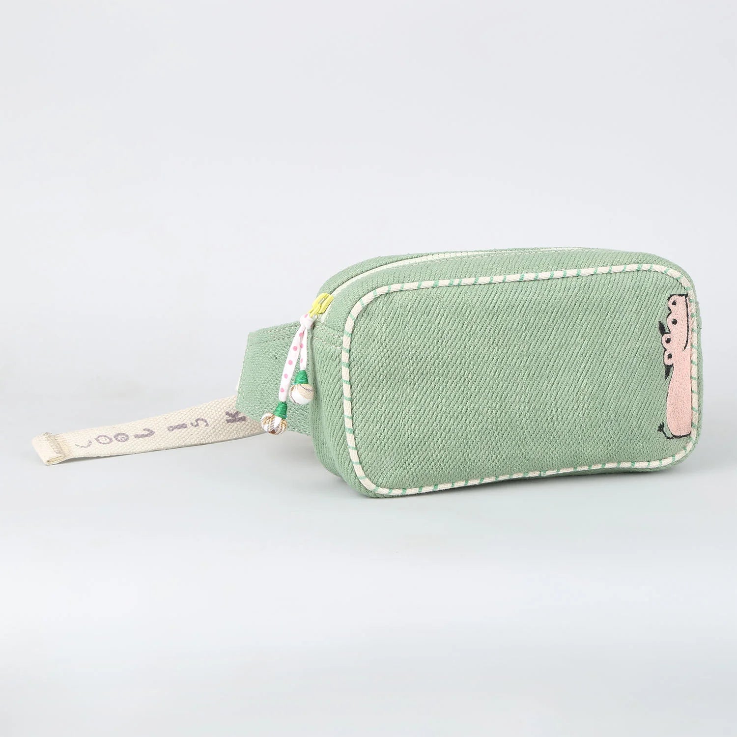 Get ready to make a statement with the Vaquita - Hippo fannypack. This pack features an embroidered hippo lounging on a bold green background, adding a touch of quirky charm to any outfit. Perfect for carrying your essentials, while embracing your playful side.